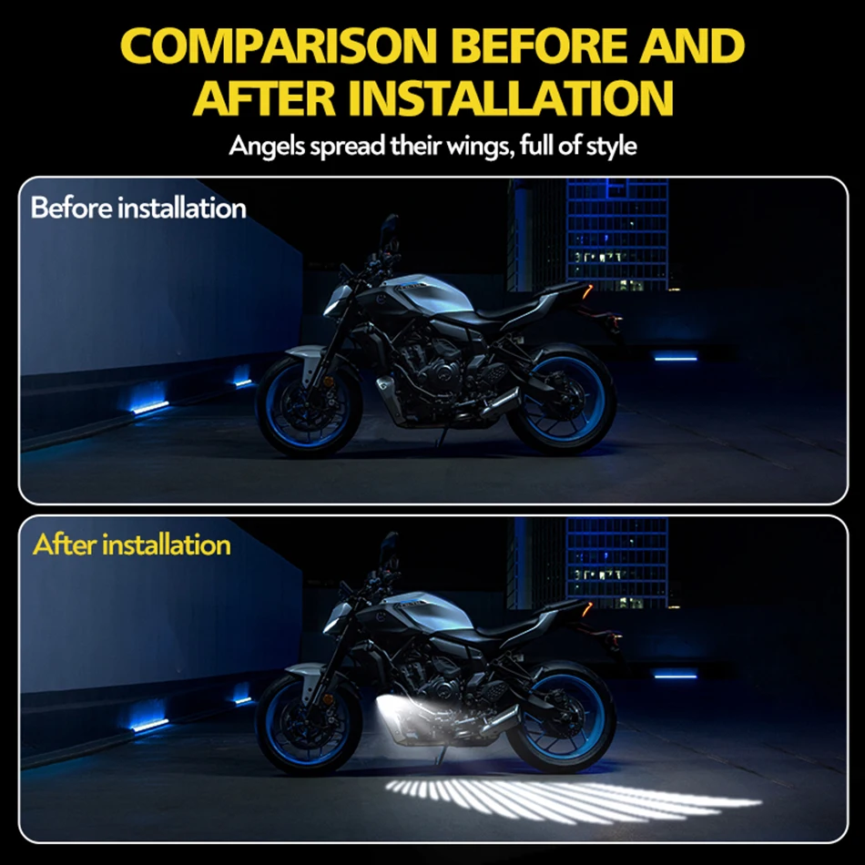1.Upgrading your Motorcycle: when you ride a motorcycle, the projection lights like angel wings on the road, cool, eye-catching but not dazzling
