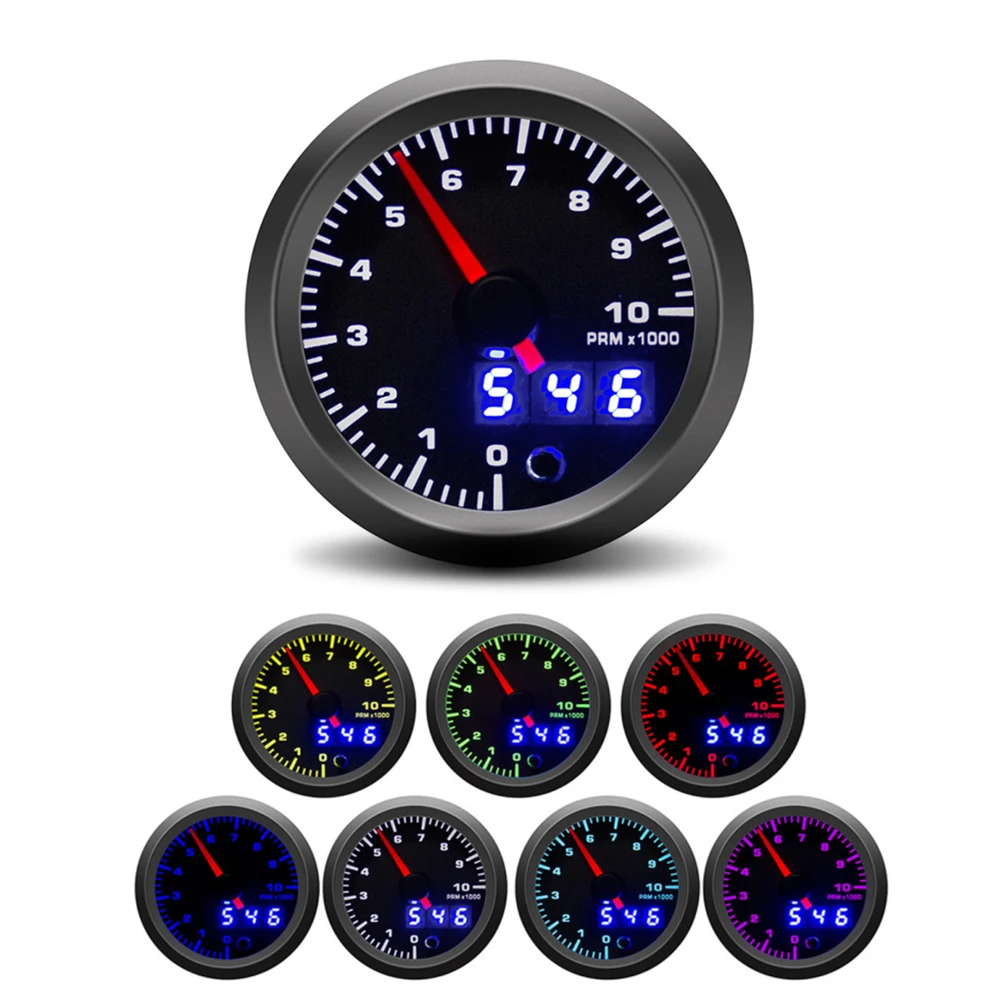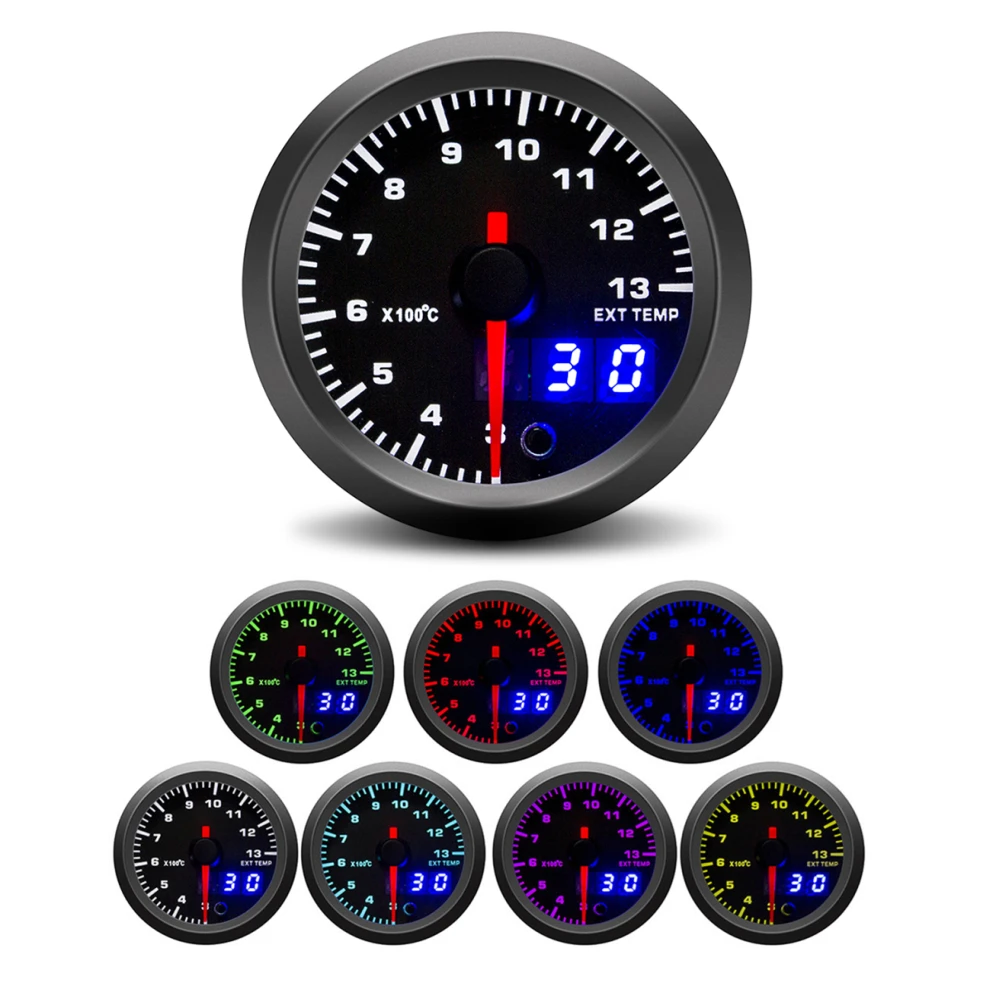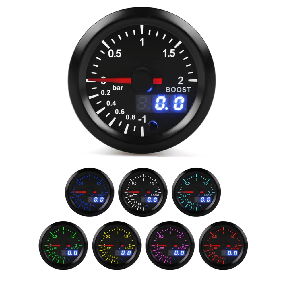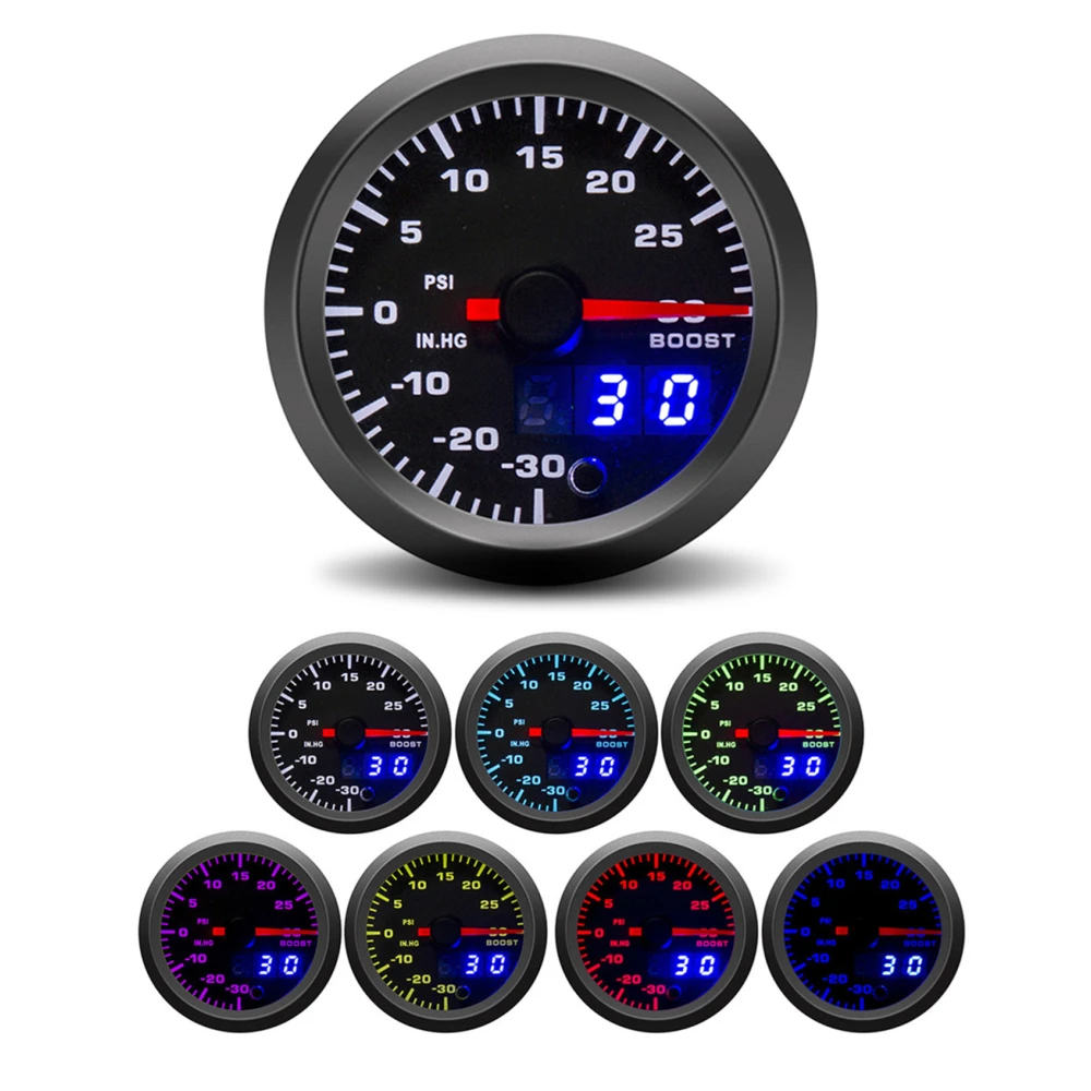 52mm Tachometer PRM Boost Gauge Water Temp Oil Temp Oil Press Voltmeter EGT Gauge AFR Gauge 7 Colors LED Dual Display Car Gauge