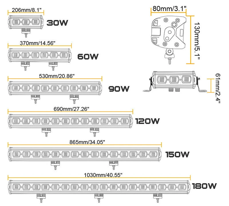 30W 8 inches - approximately 200mm x 75mm x 80mm