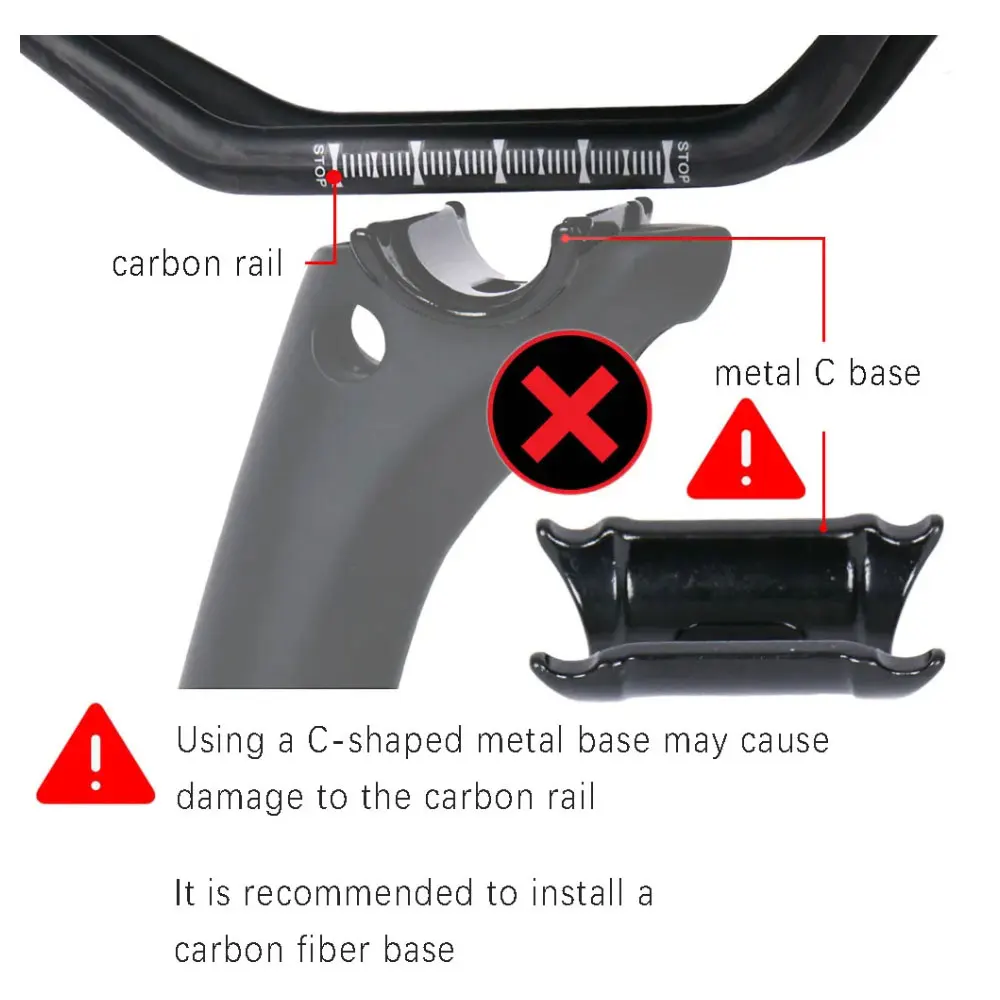 WARNING: Using the C-shaped metal base may damage the carbon rails