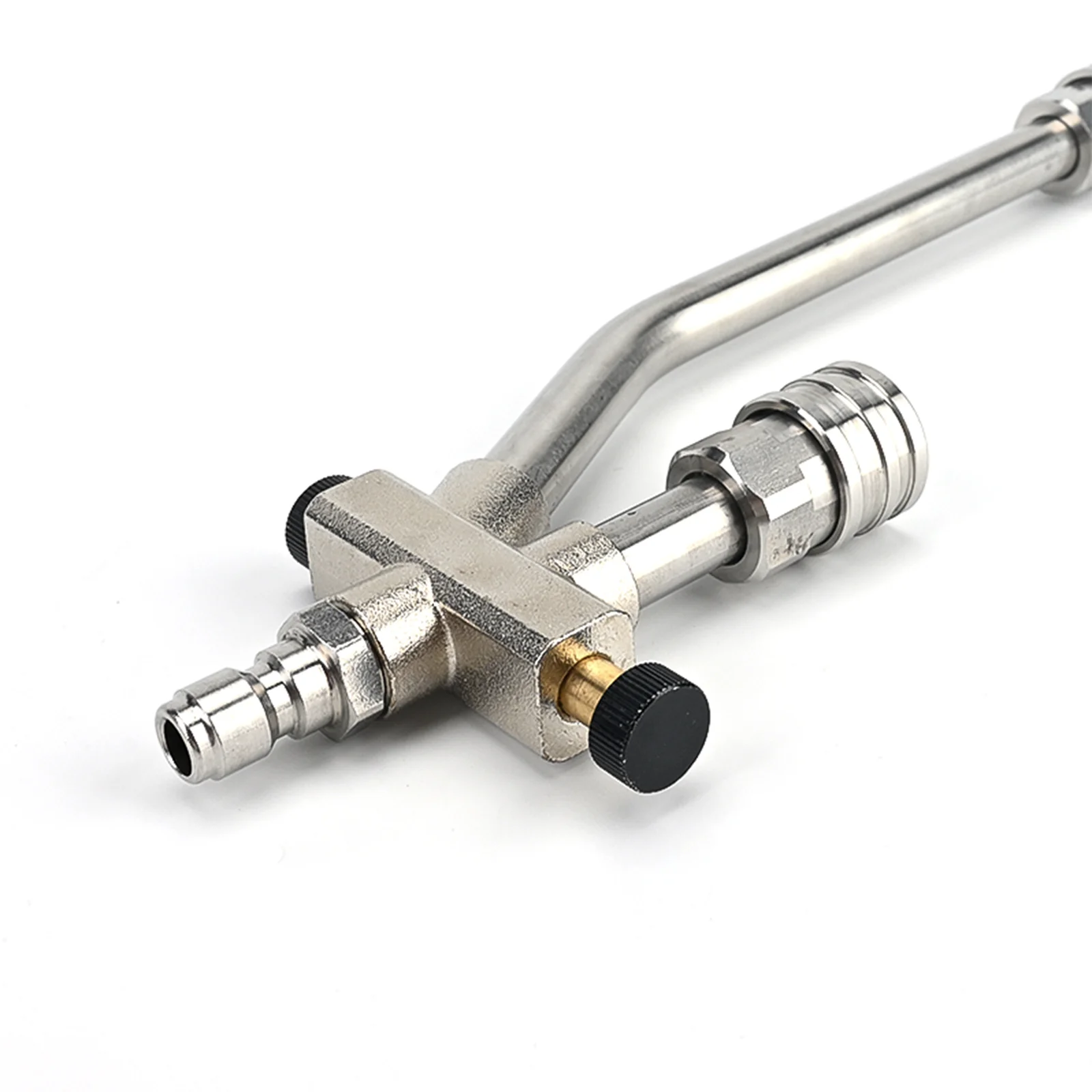 MULTIPLE CHOICE CONNECTOR: Bear Force versatile tool features a unique design with two different connector ends - a longer one for the power washer nozzle and a shorter one for the snow foam lance. This strategic arrangement ensures unobstructed water flow when using the nozzle, even with the foam dispenser connected.