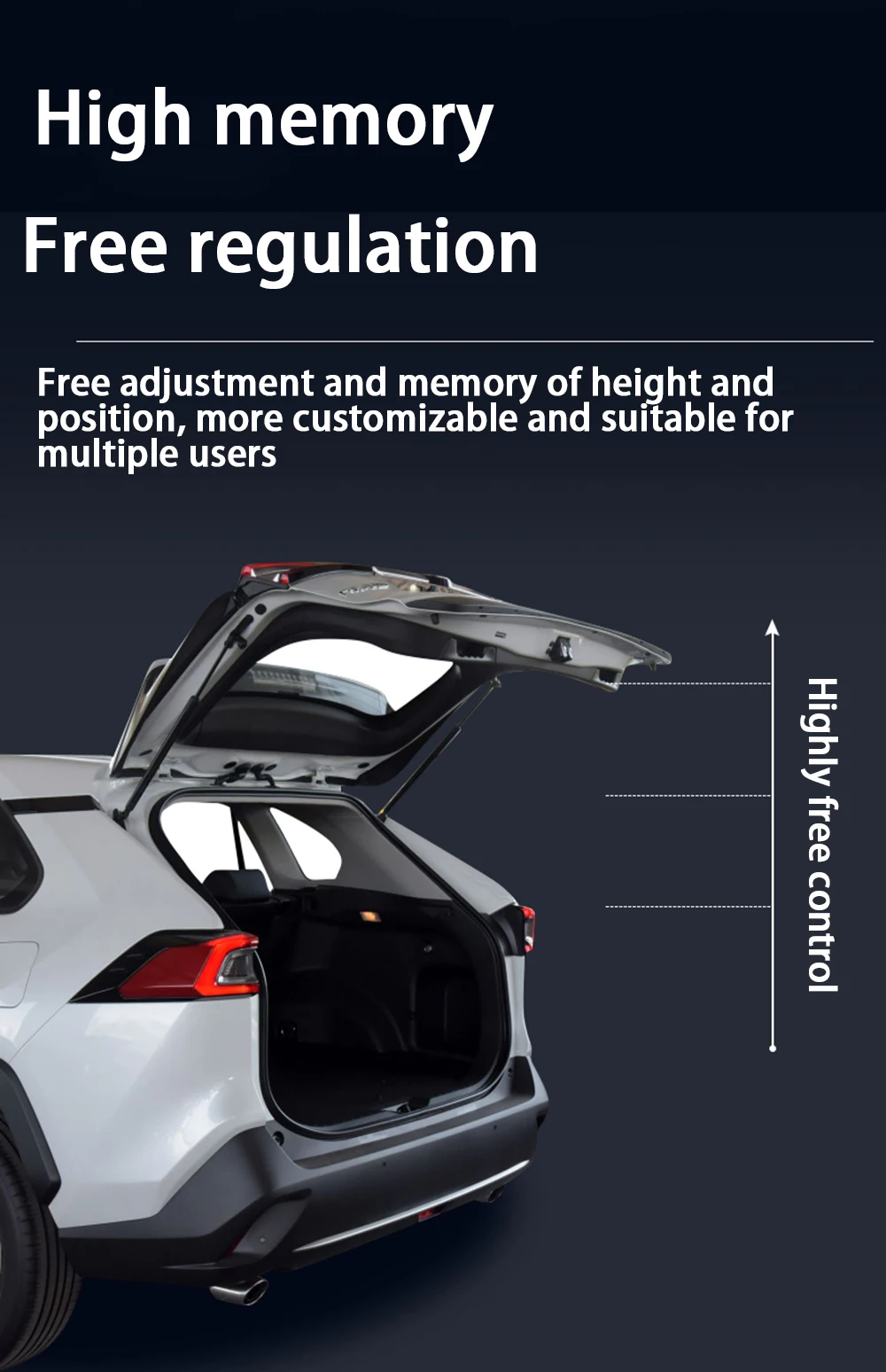Memory the height : The user set the tailgate to the suitable height and then long press the key. You will hear the "beep..beep". It will raise this height next time.