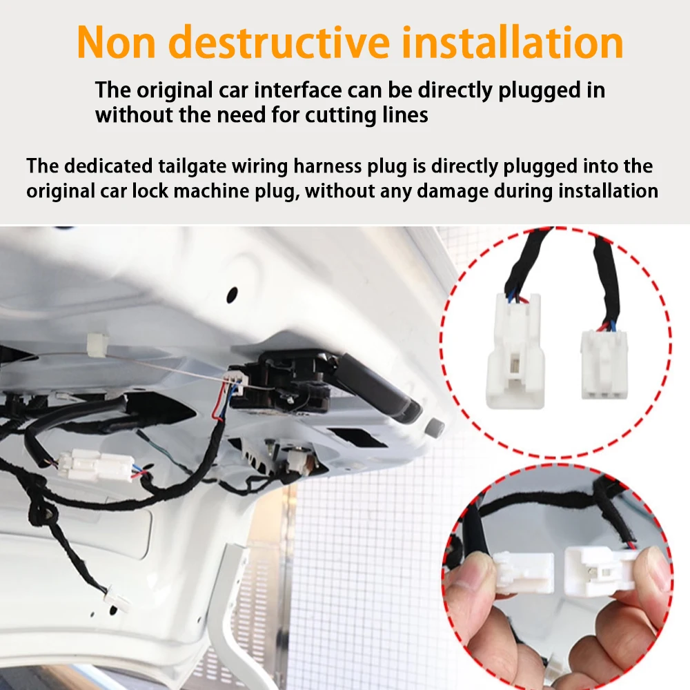The dedicated tailgate wiring harness plug is directly plugged into the original car lock machine plug, without any damage during installation
