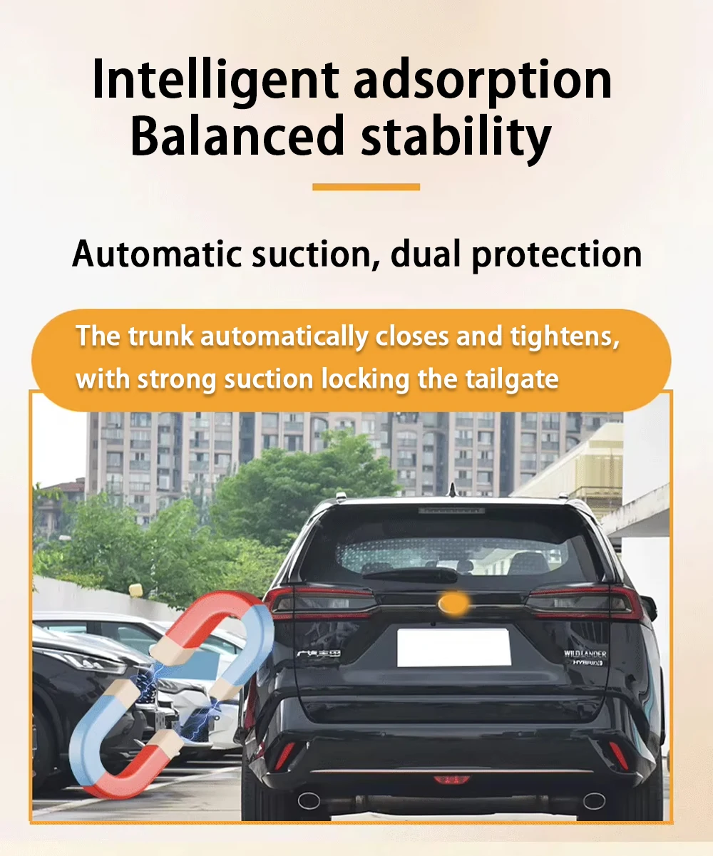 The trunk automatically closes and tightens, with strong suction locking the tailgate
