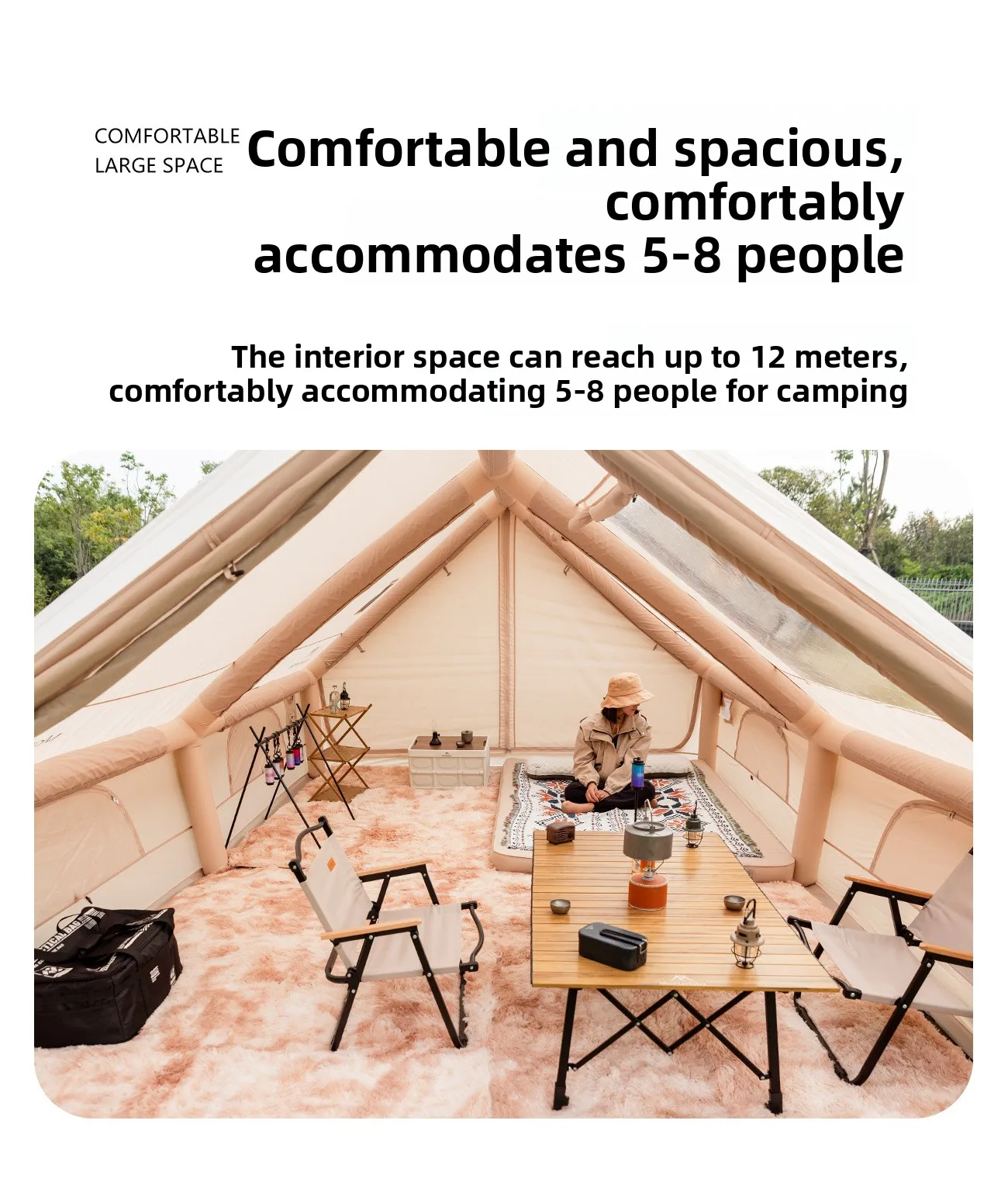 Accommodate up to 5/8 people comfortably in this spacious 12 ㎡ tent, ideal for family or group camping trips.