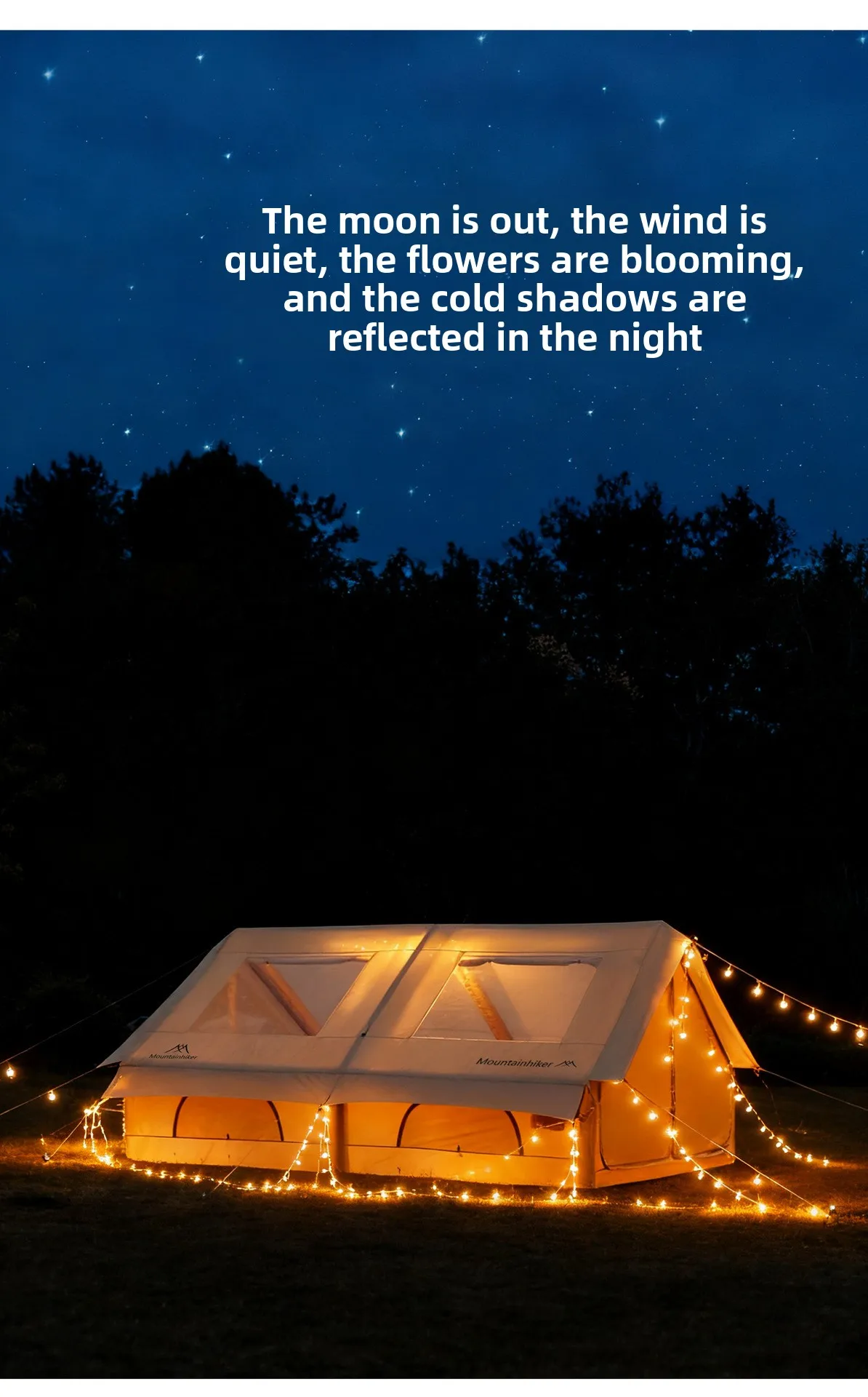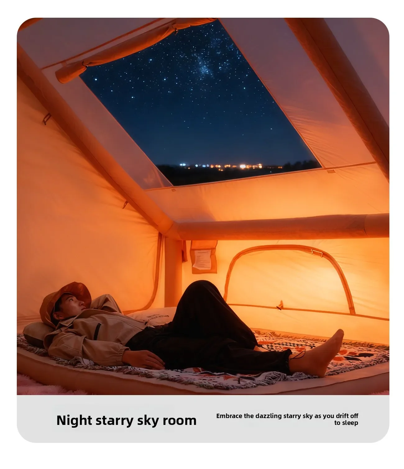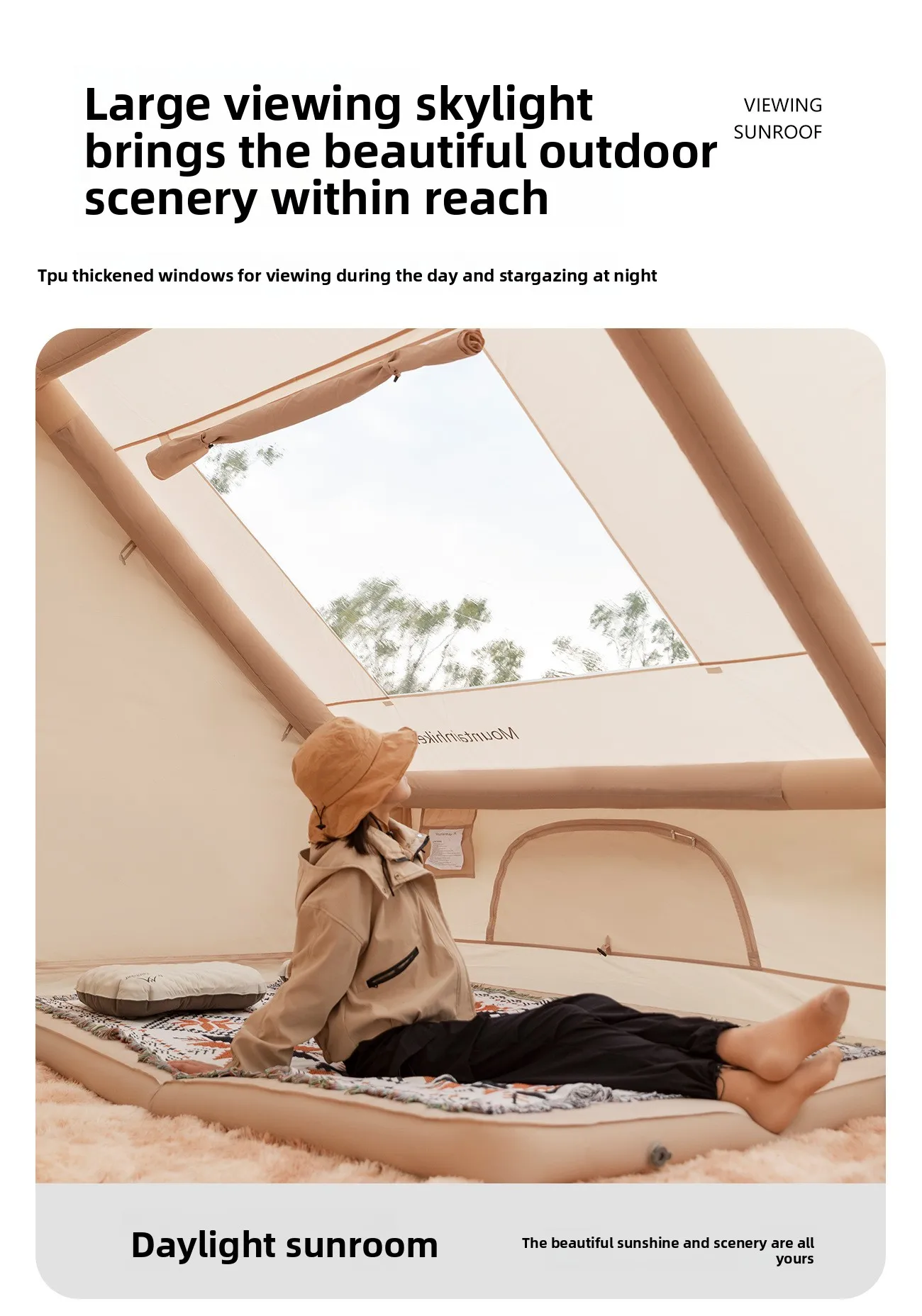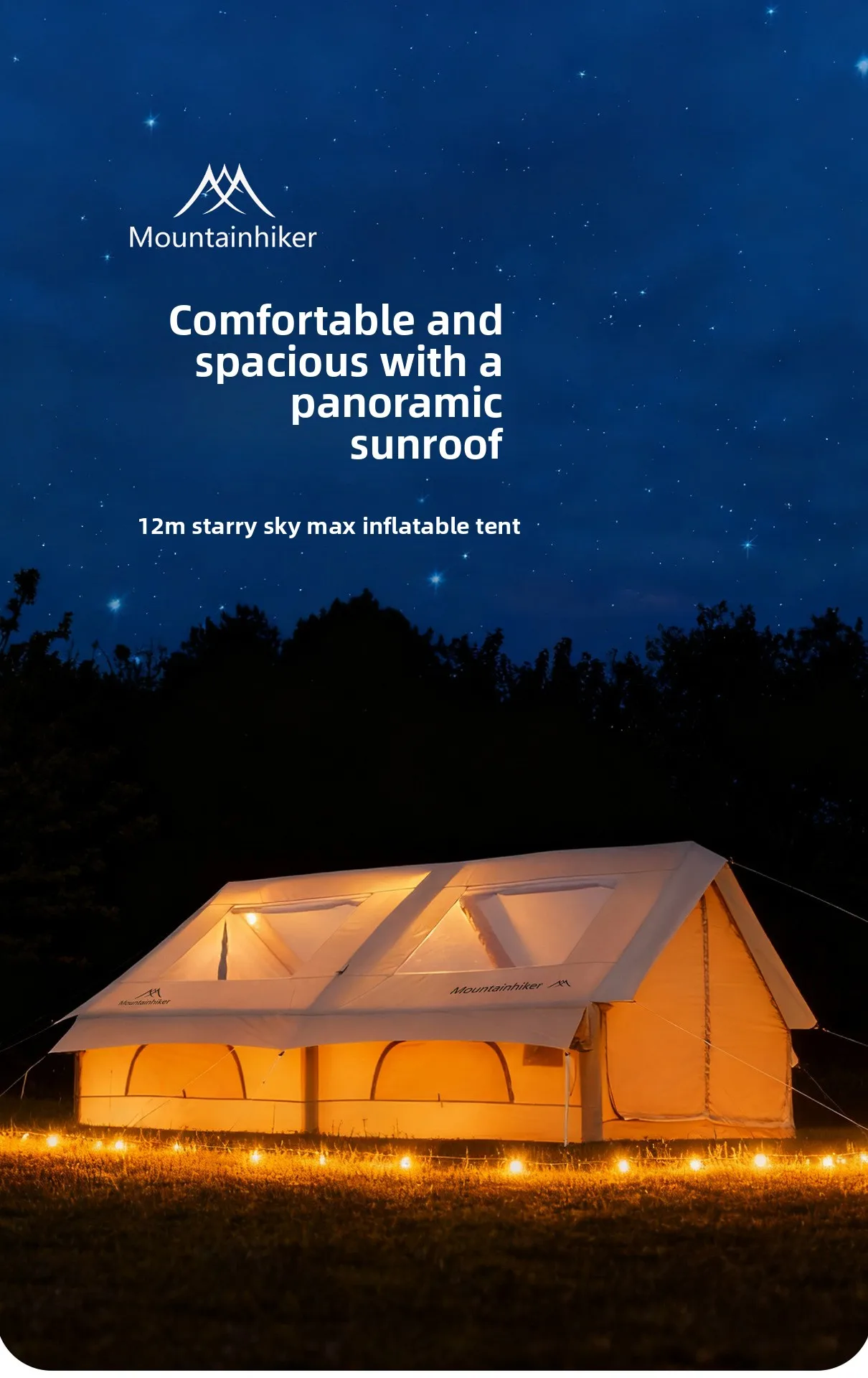 MOUNTAINHIKER 12㎡ MAX Starry Sky Inflatable Tent Beige Observation Skylight 8-10 Person Outdoor Camping Quick Setup Tent Anti-UV