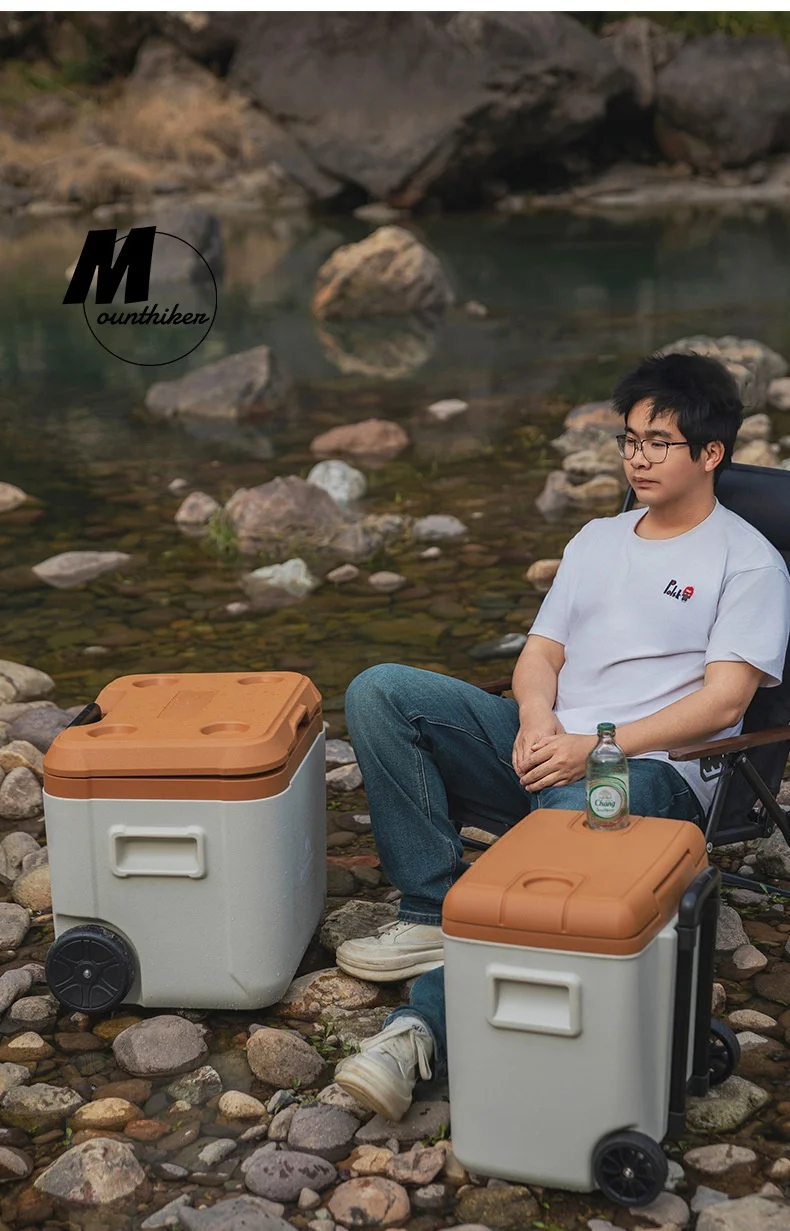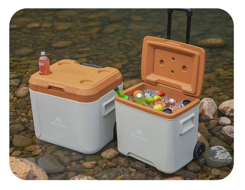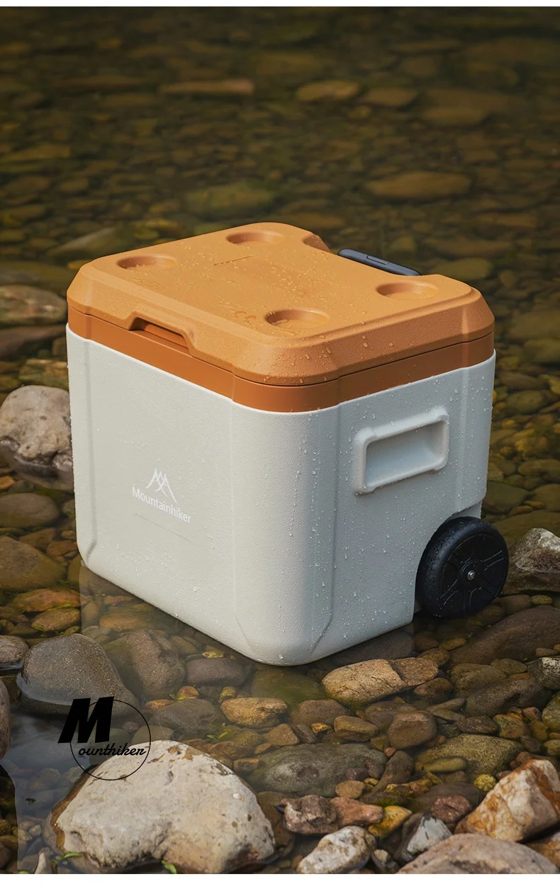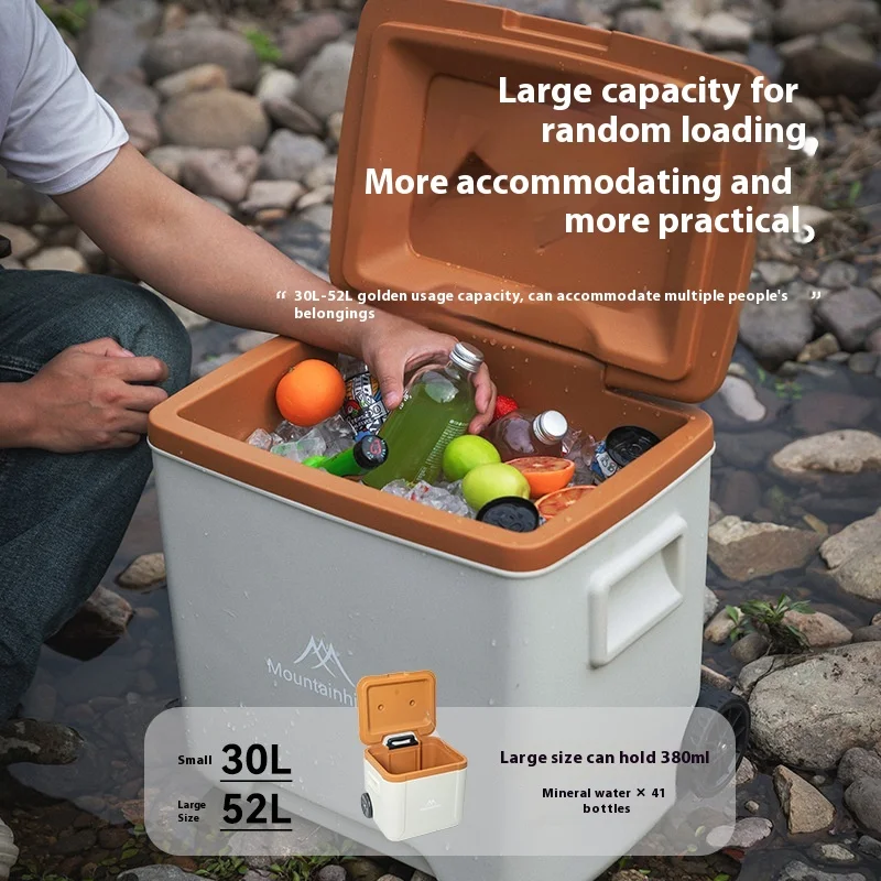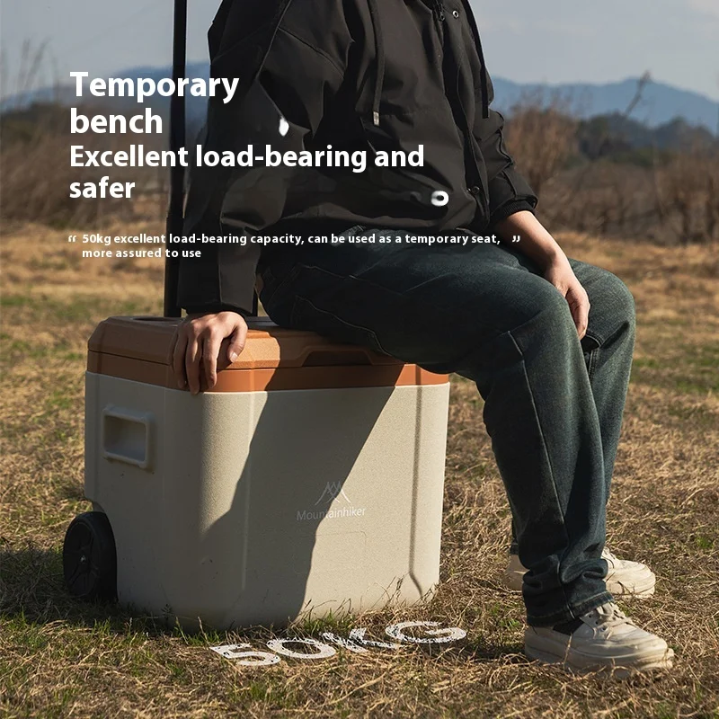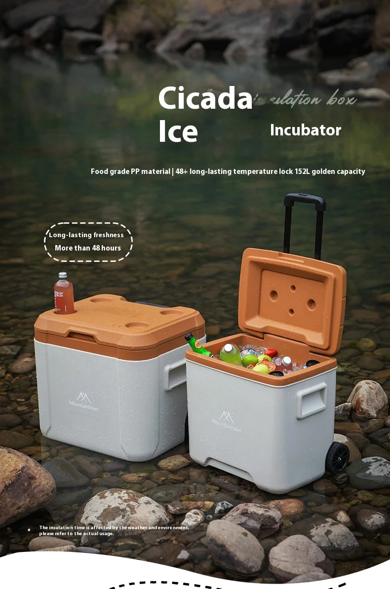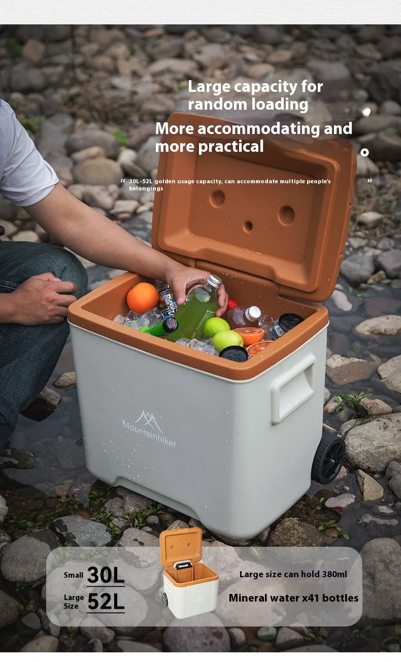 MOUNTAINHIKER 30L 52L Outdoor Refrigerator Fresh with Trolley Wheels Incubator Portable Warm Box BBQ Car Pulley Car Storage Box