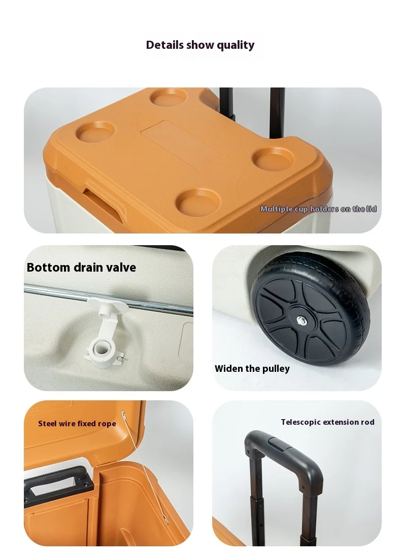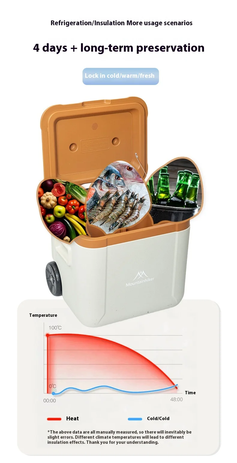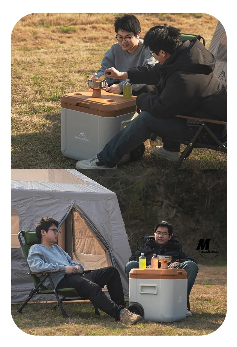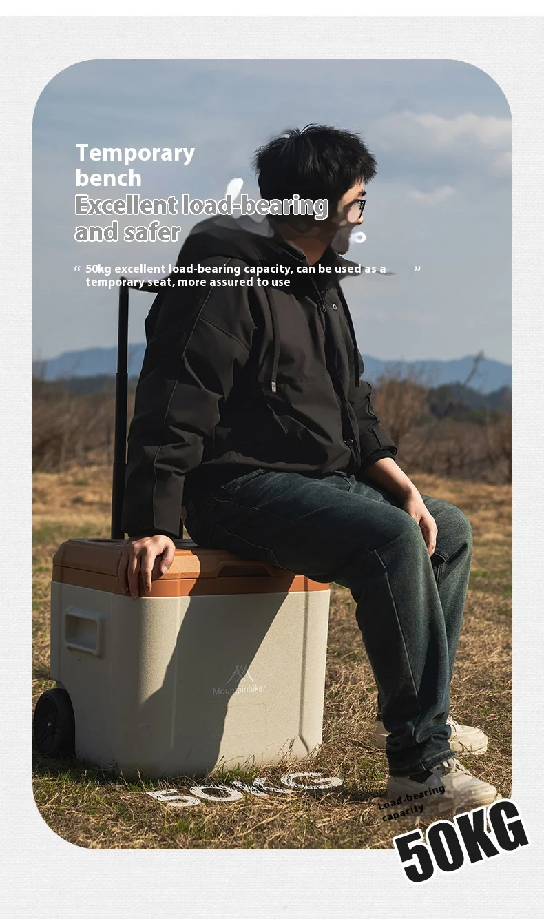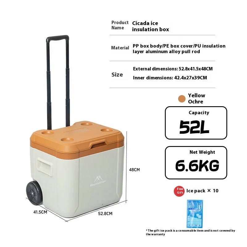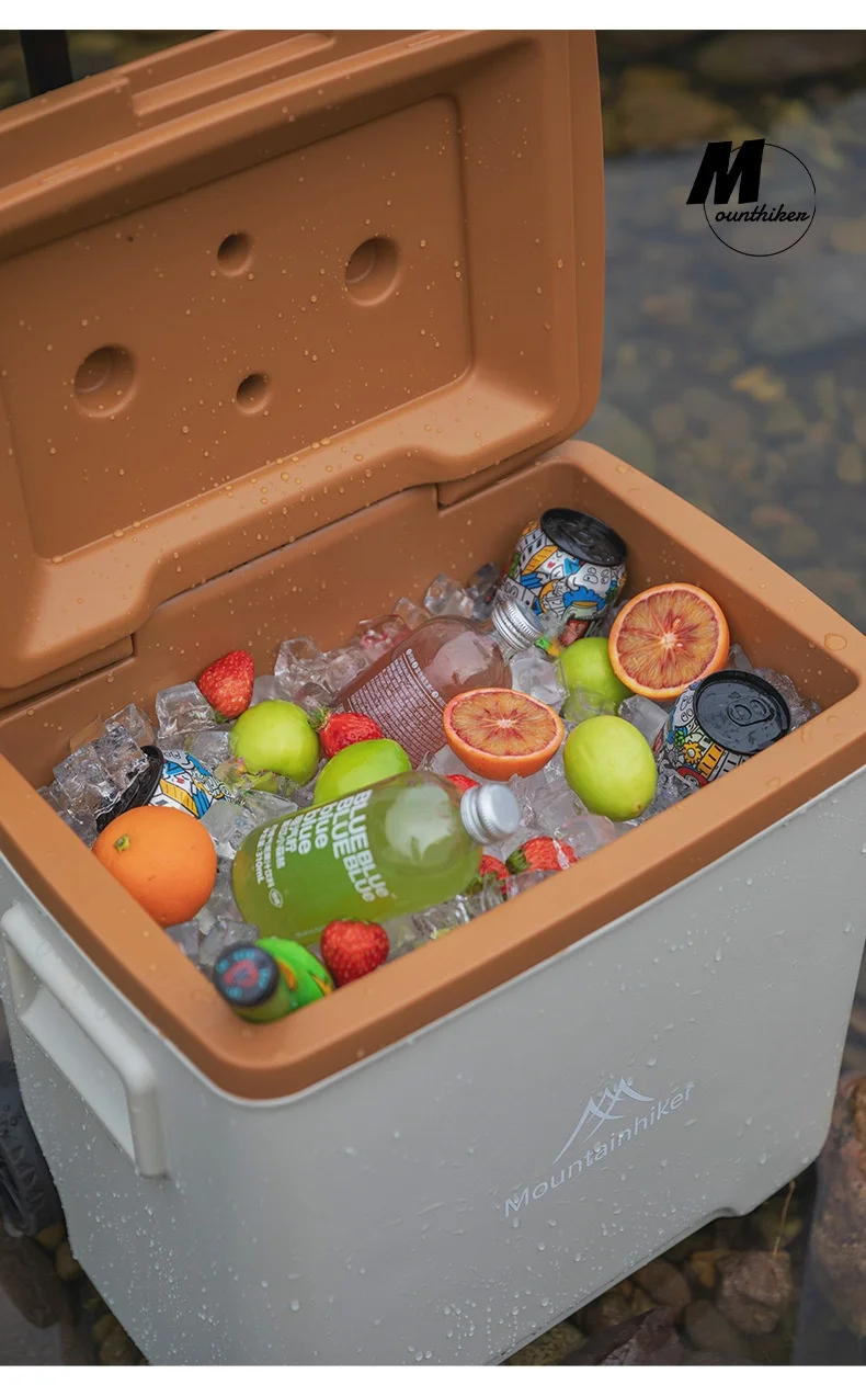 MOUNTAINHIKER 30L 52L Outdoor Refrigerator Fresh with Trolley Wheels Incubator Portable Warm Box BBQ Car Pulley Car Storage Box