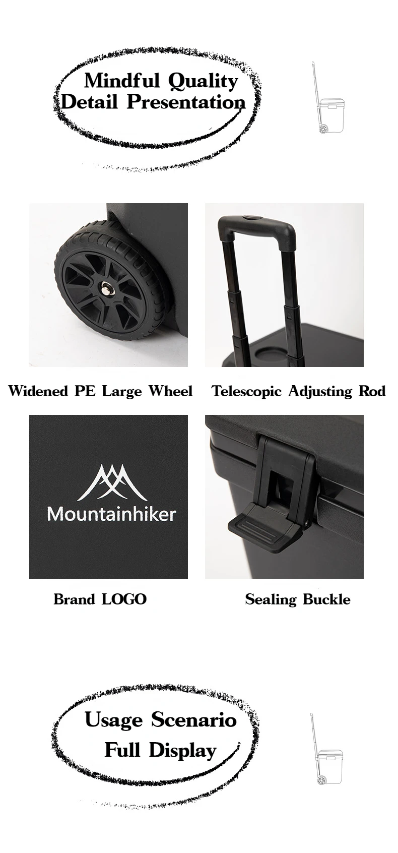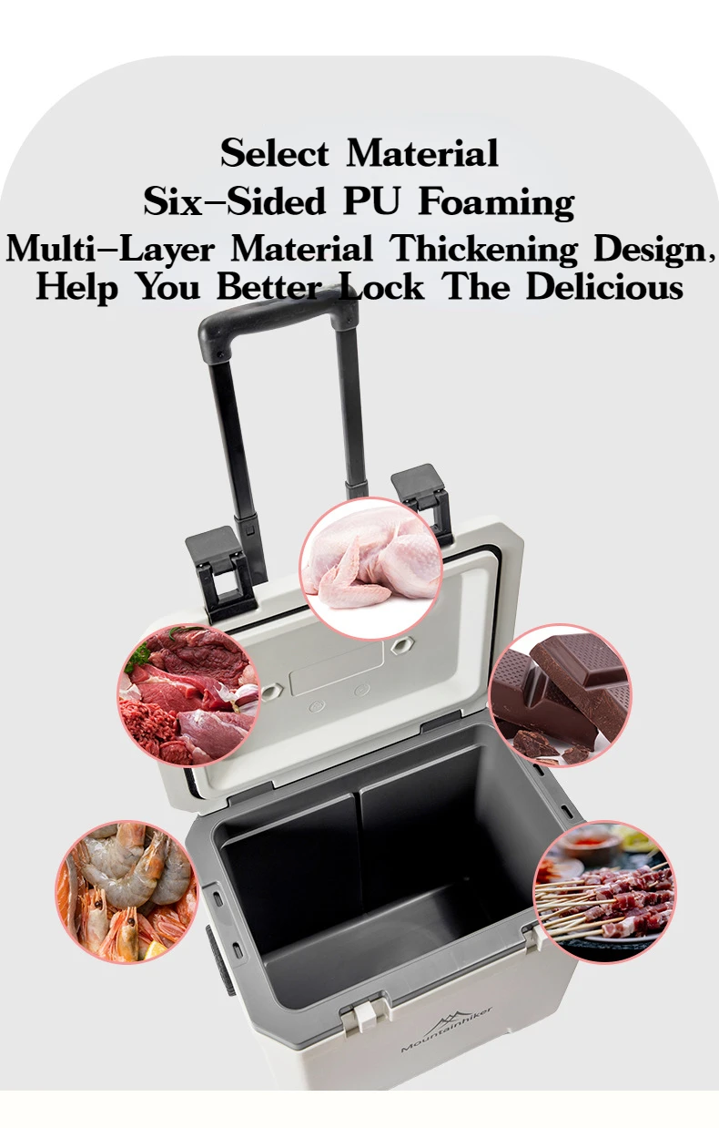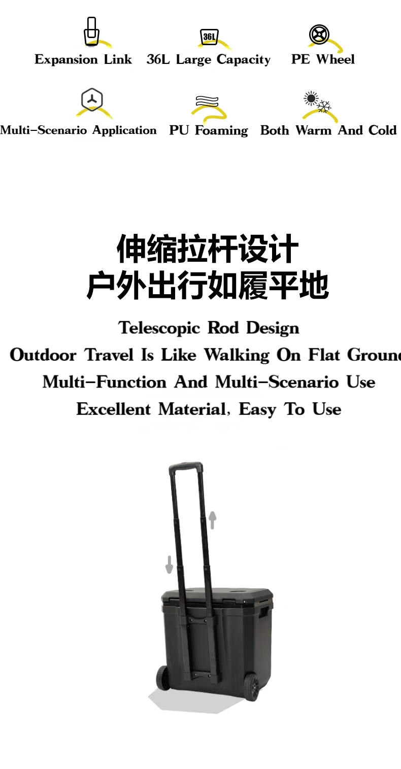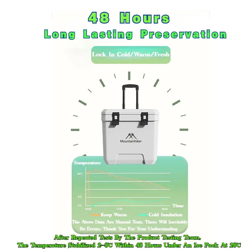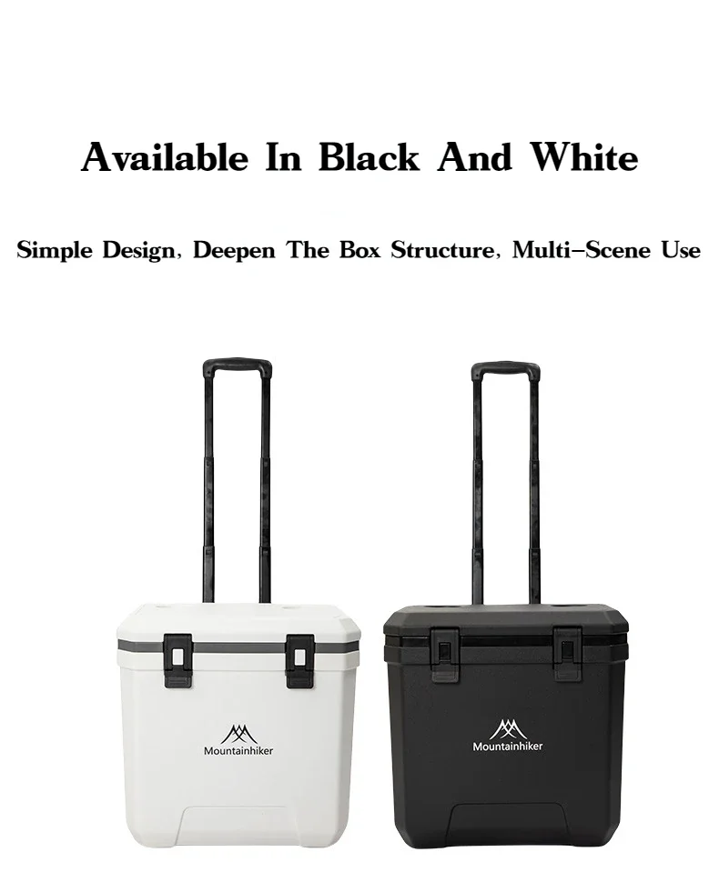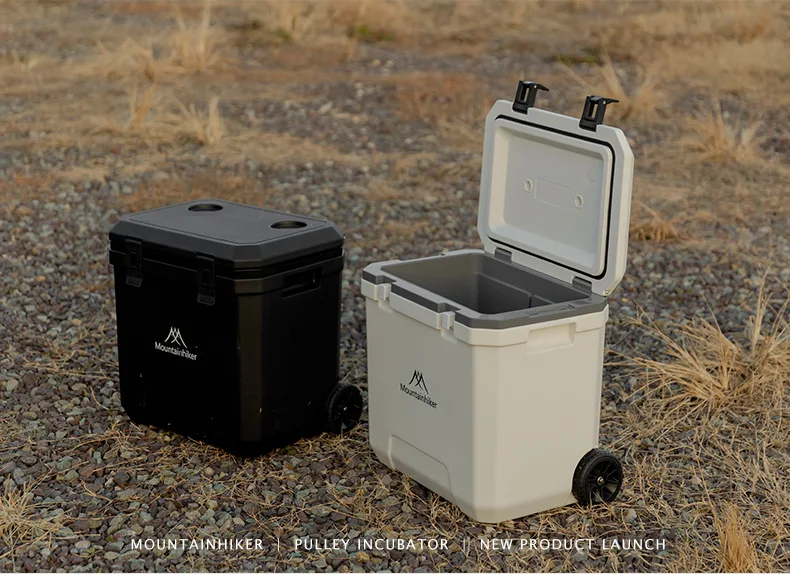 MOUNTAINHIKER 36L Warm Box Refrigerator Box Portable Warm Box BBQ Car Pulley with Trolley Wheels Incubator Outdoor Refrigerator 48 Hours Long Lasting Preservation The Temperature Stabilized By 2-8 ° C Within 48 Hours Under An Environment of 28 ° C With An Ice Pack Model: Pulley Incubator Color: White, Black External Dimensions: 46.5x40.5x46CM Inner Dimension: 37x22.5x37.8CM Length From Pulley To Rod Of Incubator: 101CM Weight: About 5.5KG Material: Shell, Cover, Pulley: PE Inner Liner: PP