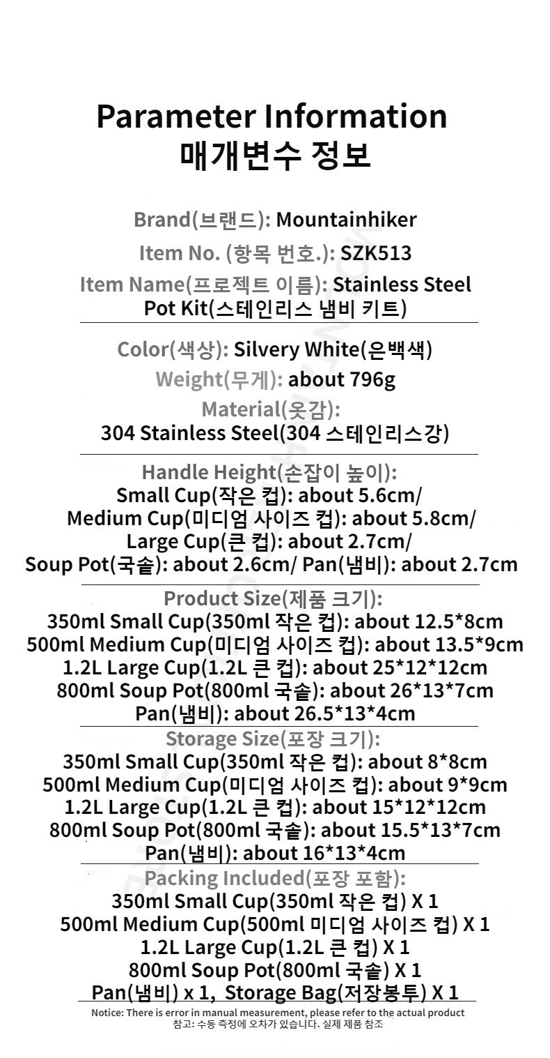 800ml Soup Pot(800ml 국솥): about 15.5*13*7cm