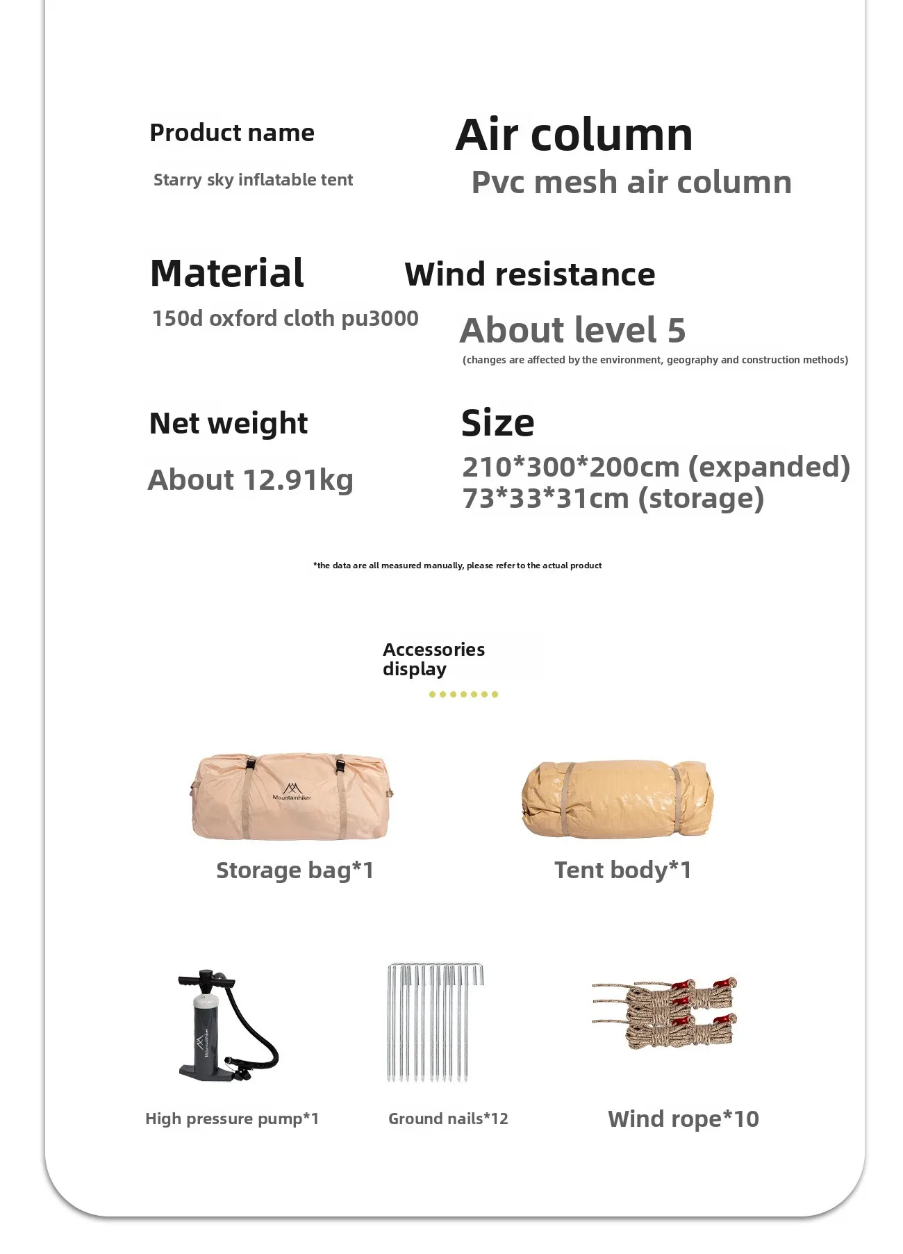 MOUNTAINHIKER 6.3㎡ Outdoor Inflatable Tent
