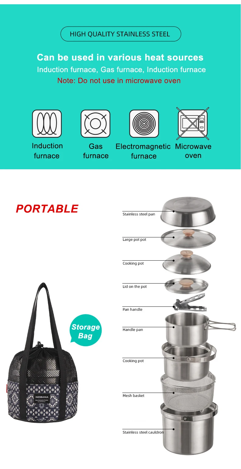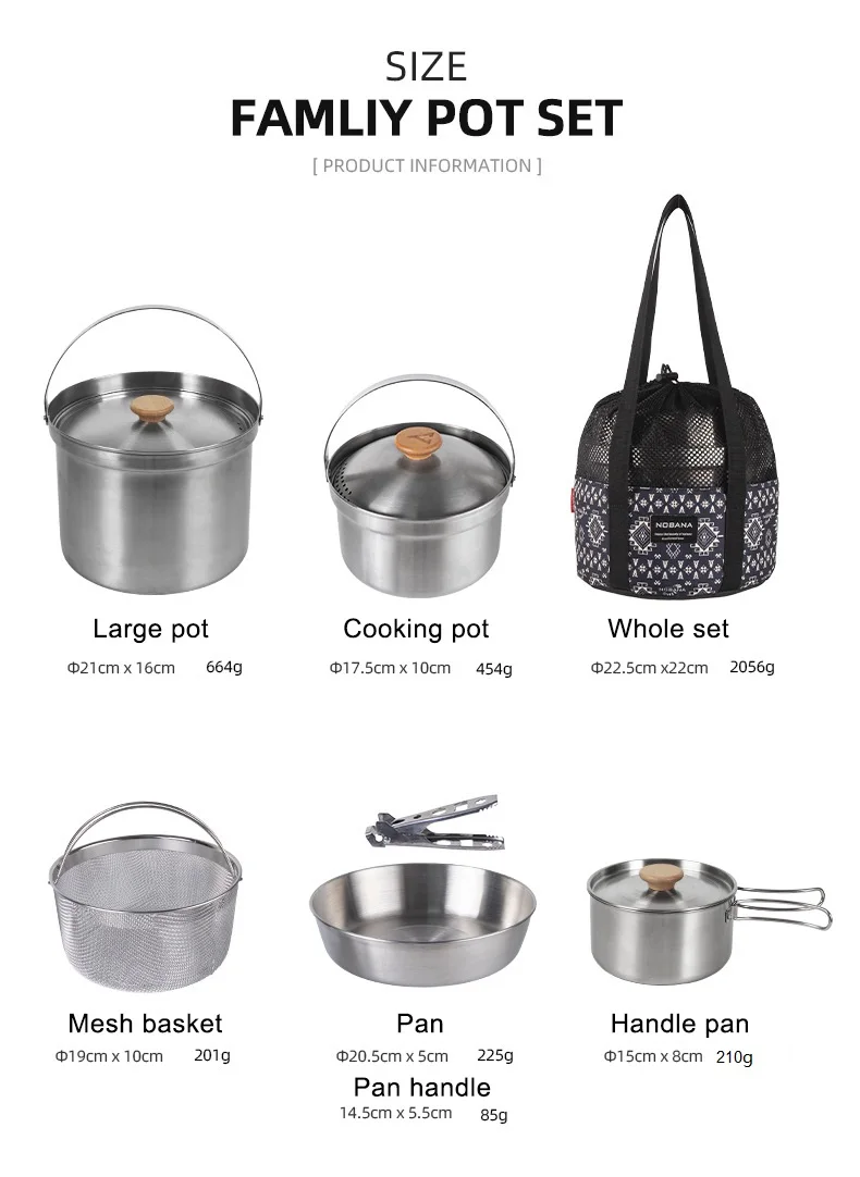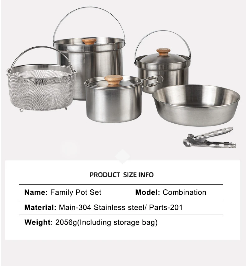 MOUNTAINHIKER A Style Outdoor Stainless Steel 5pcs Camping Tourism Family 5L Portable Picnic Soup Frying Steaming Household