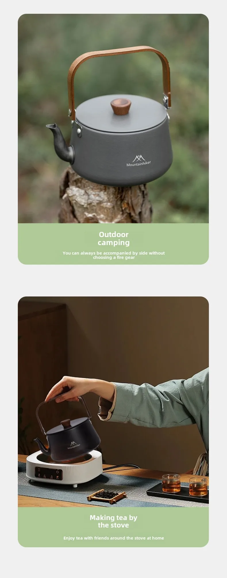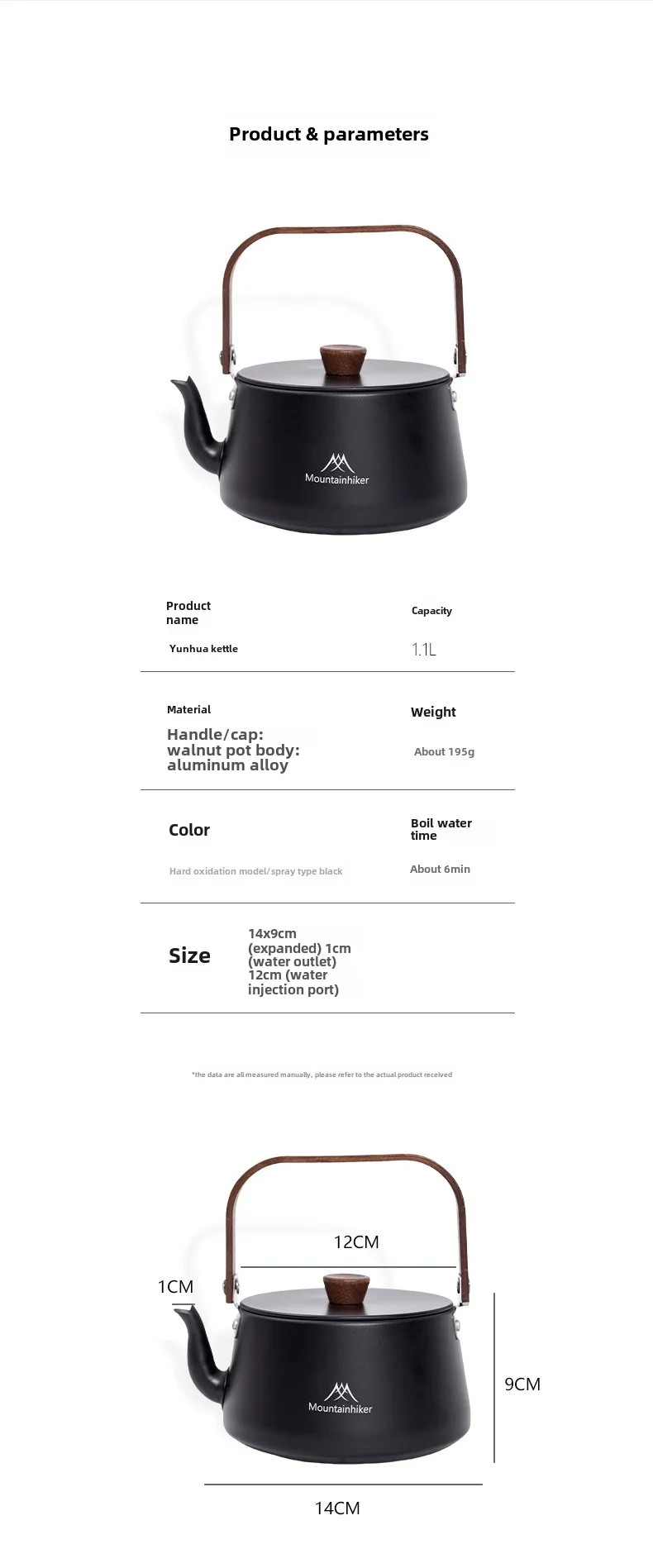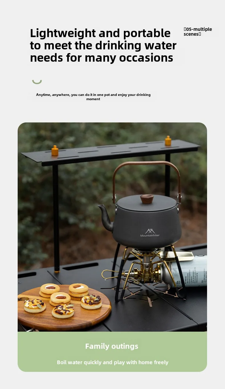 MOUNTAINHIKER Camping Style Outdoor Travel Kettle Lightweight Portable Picnic Aluminum Alloy 1.1L Teapot Coffee Pot