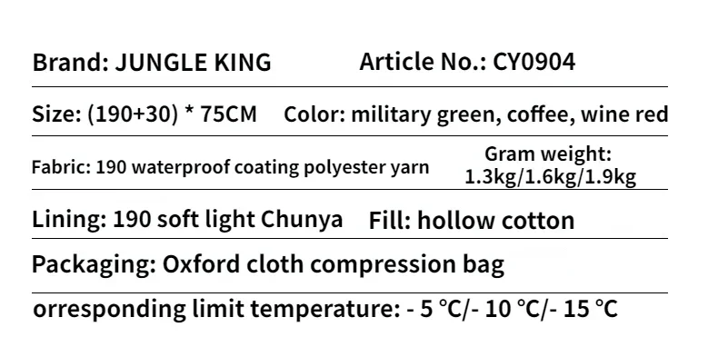 Sleeping Bag Temperature Scale Category: Winter Sleeping Bag