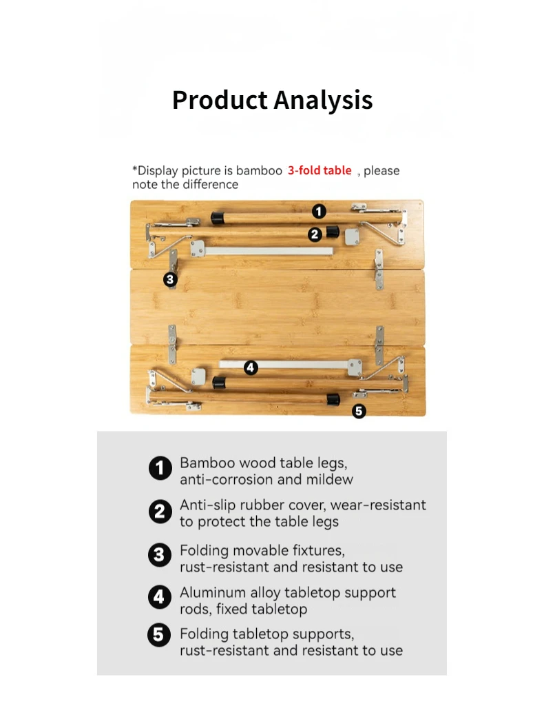 1. This is a bamboo folding table, available in two styles: two folding table and three folding table.