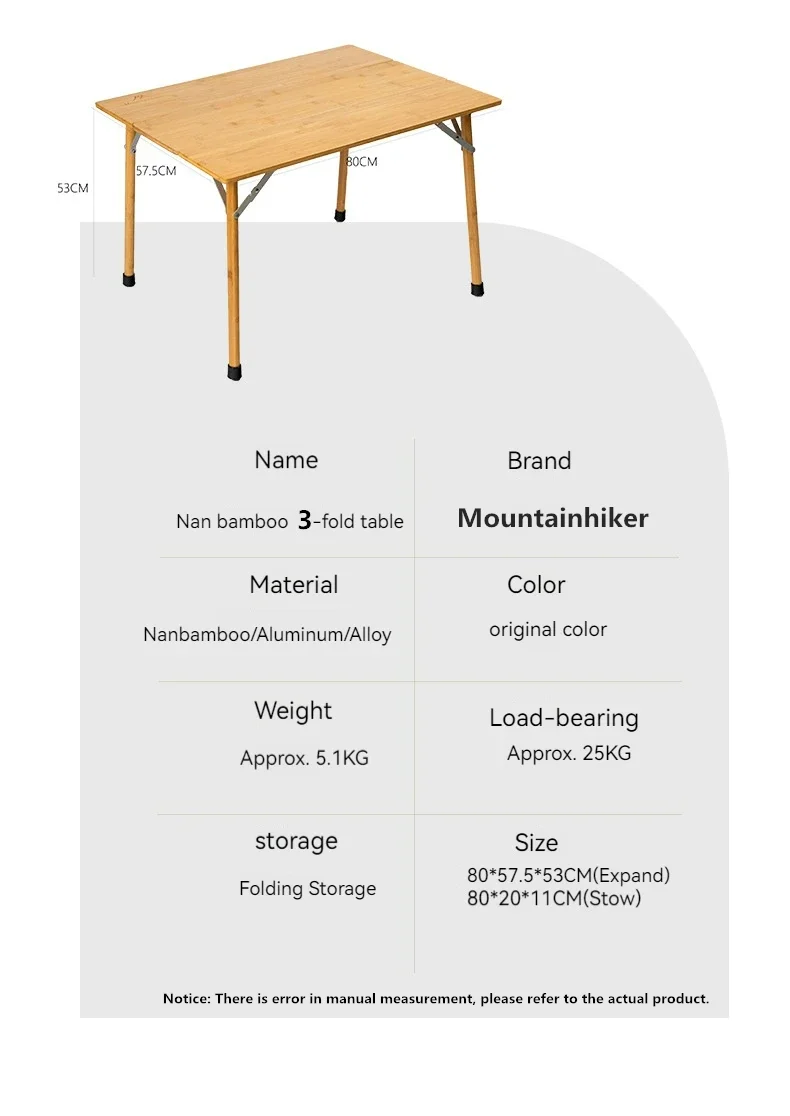 MOUNTAINHIKER Outdoor Camping Bamboo 2/3 Folding Table