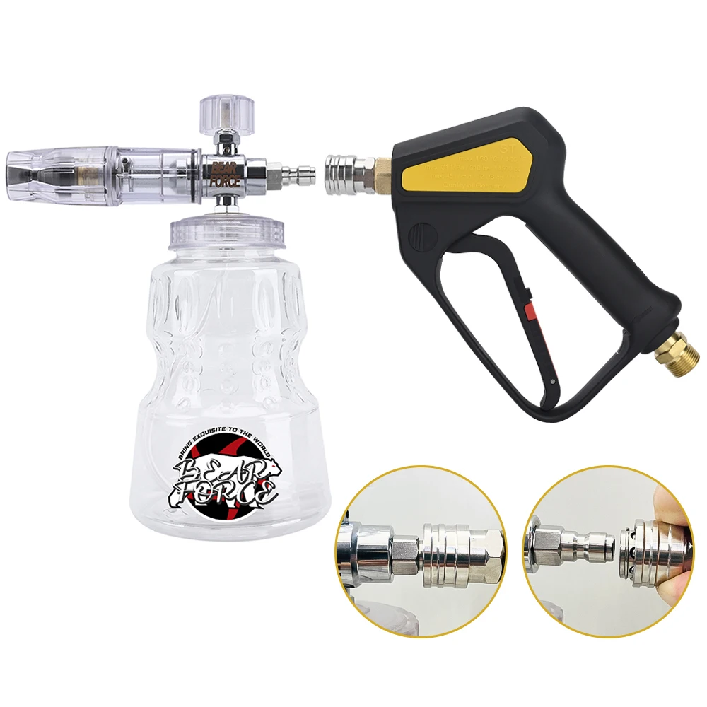 Type F: With 1L quick release 1/4 "foam bottle + M22-14 ThreadSwivel Spray Guns + 5 Spray Nozzles +Belt Clip Nozzle Holder