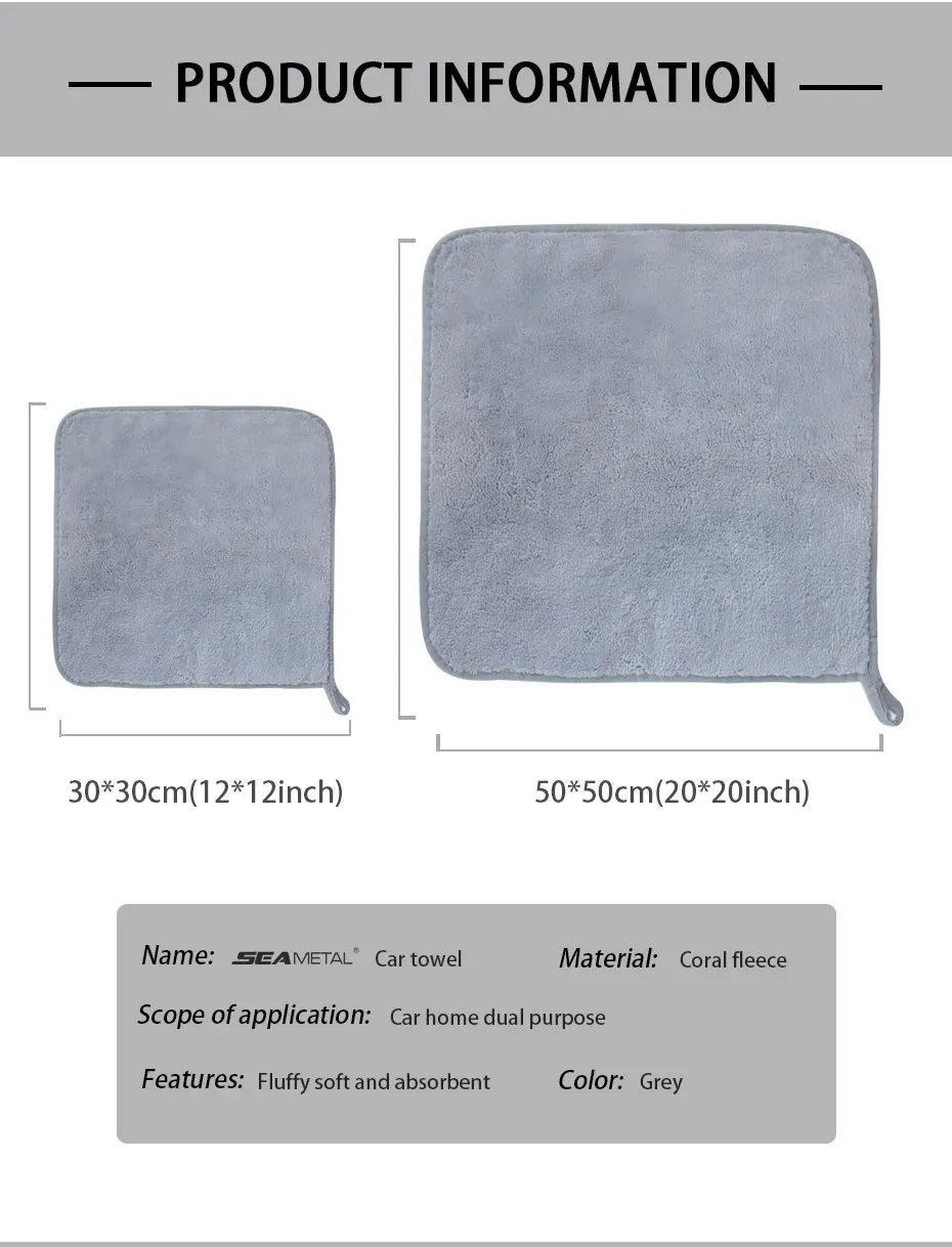 SEAMETAL 6/3/1pcs Car Microfiber Towel 800GSM Super Absorption Car Cleaning Hemming Cloth Auto Wash Drying Towels Detailing Rags