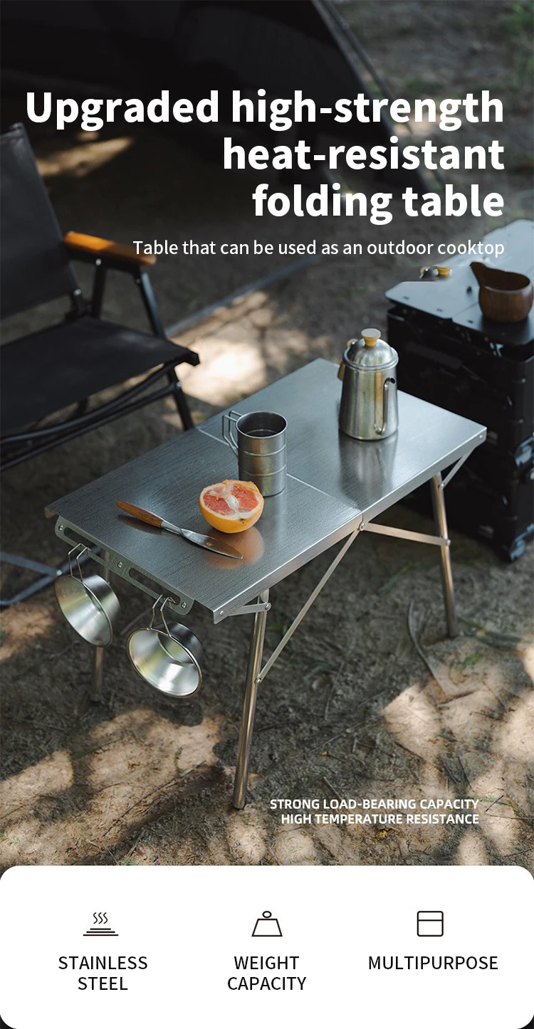 The ShineTrip Stainless Steel Folding Table is an essential outdoor equipment for camping, picnics, and barbecues. Made of high-quality stainless steel material, this table is heat and scratch-resistant, ensuring a long-lasting use. Its high load-bearing capacity and water-resistant design make it ideal for any weather condition.
