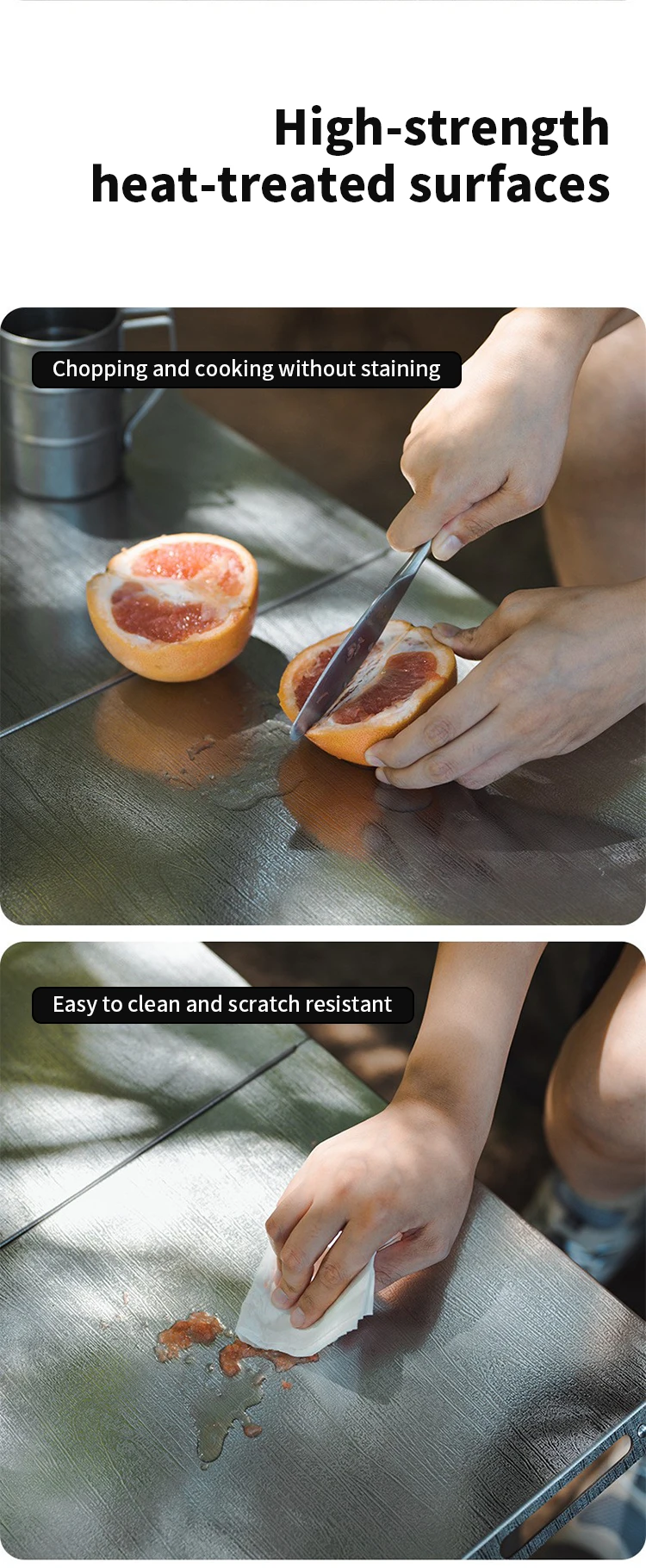 1.High-quality stainless steel material makes the table heat and scratch-resistant, ensuring a long-lasting use.
