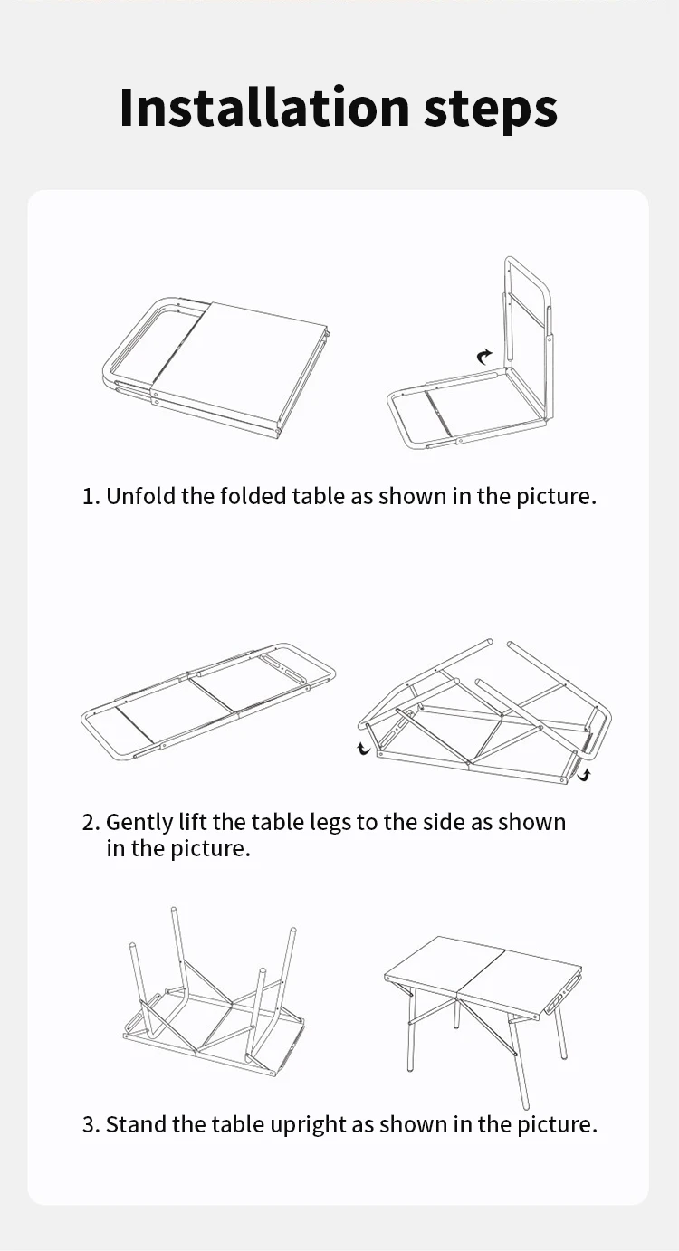 The ShineTrip folding table has a portable and lightweight design, which is perfect for outdoor activities. It is easy to transport and store, and it saves a lot of space. The one-piece structure requires no installation, making it hassle-free and time-saving.