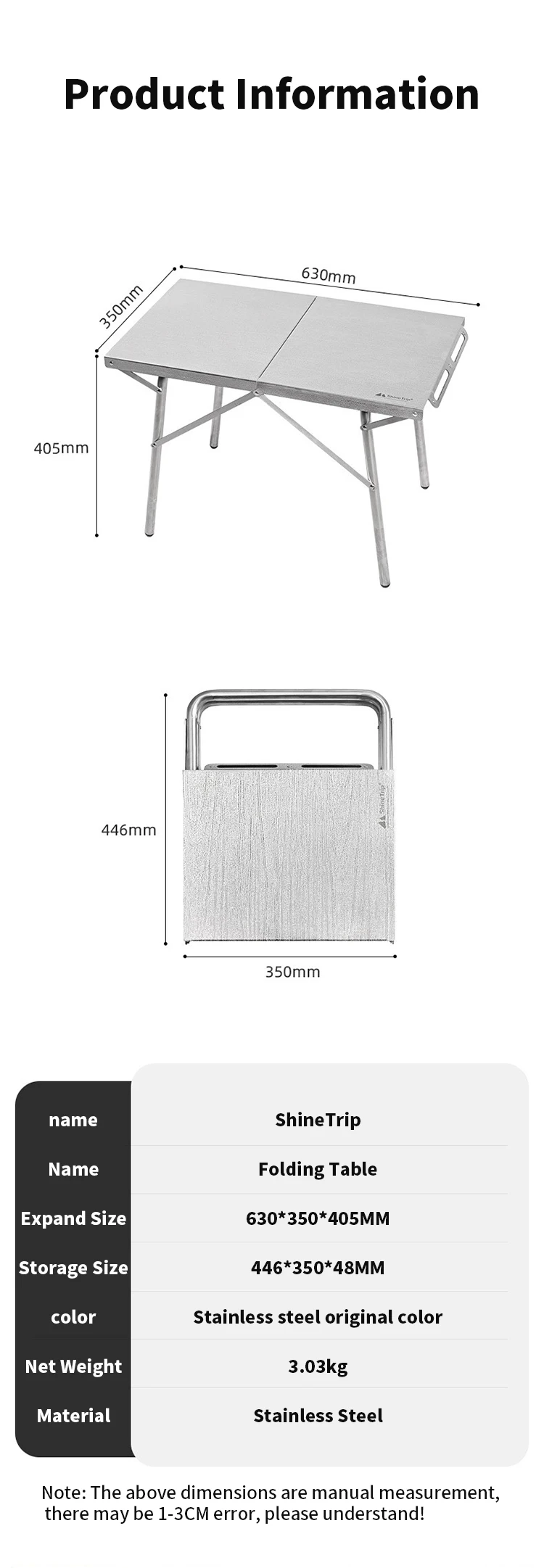 In conclusion, the ShineTrip Stainless Steel Folding Table is a perfect choice for anyone who loves outdoor activities. Its heat-resistant, scratch-resistant, and water-resistant properties make it a durable and long-lasting product. Its portable and lightweight design makes it easy to transport and store. The table requires no installation, making it hassle-free and time-saving. It is perfect for camping, picnics, and barbecues, providing a convenient and comfortable dining experience.